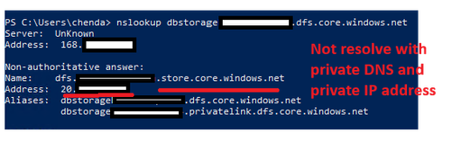 Then we tried to figure out why the dfs and blob endpoint doesn't resolve with private IP.