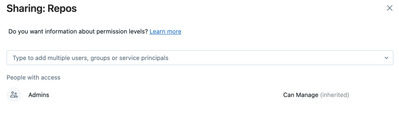Attached below is a screenshot of the share permissions for the /Workspace/Repos folder. It is the same for the /Workspace/Repos/BC subfolder. I am not an admin.