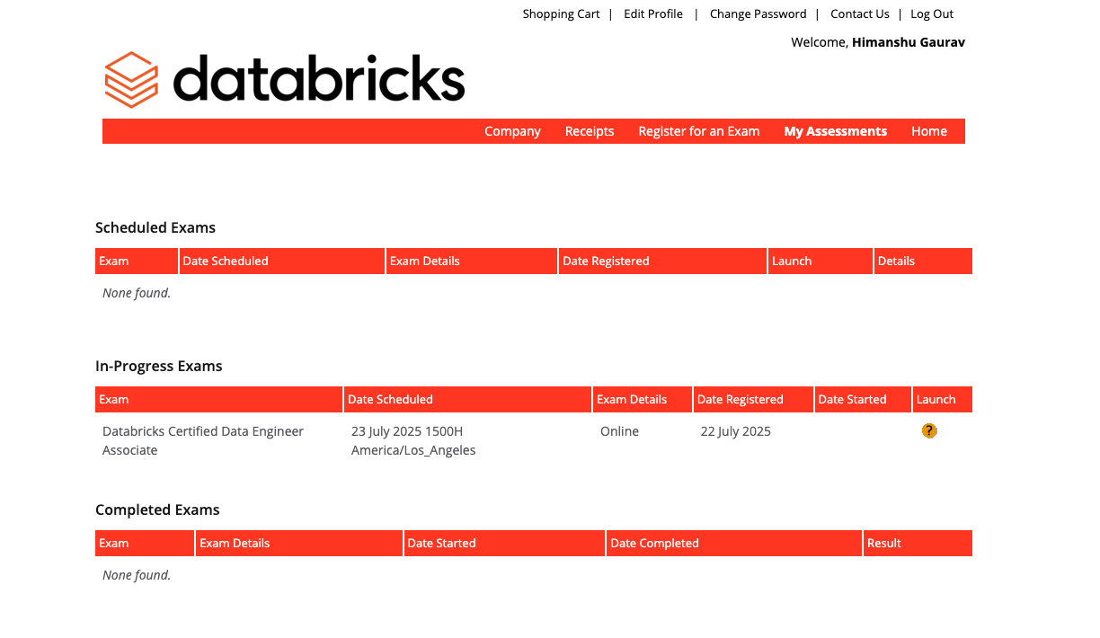 I was taking the online exam for Databricks Certified Data Engineer Associate today at 3 PM PDT. Even before the exam could start, my session got suspended, so I was not able to continue.