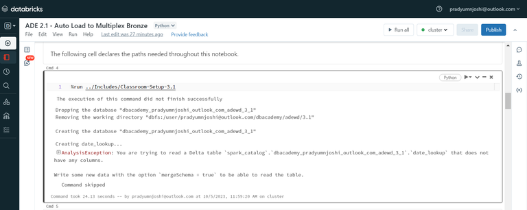 #databricksacademy #advanceddataengineering #databrickscommunityedition #error #databricks error