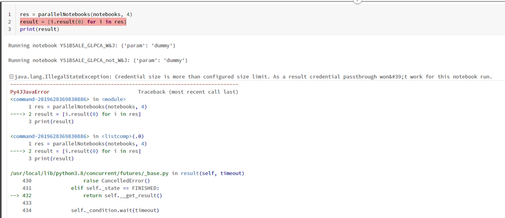 note 1: I use same class, functions, cluster, credential for another use case of parallel notebook in the same databricks instance and it works fine.