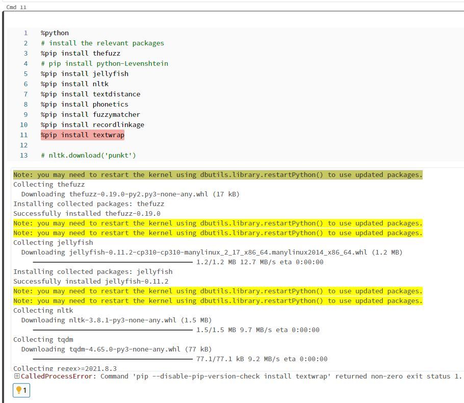 while installing a python package on my databricks notebook, I kept getting a message saying that: "Note: you may need to restart the kernel using dbutils.library.restartPython() to use updated packages."