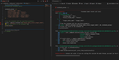 Iโm experimenting with the Databricks VS Code extension, using Spark Connect to run code locally in my Python environment while connecting to a Databricks cluster. Iโm trying to call one notebook from another via: