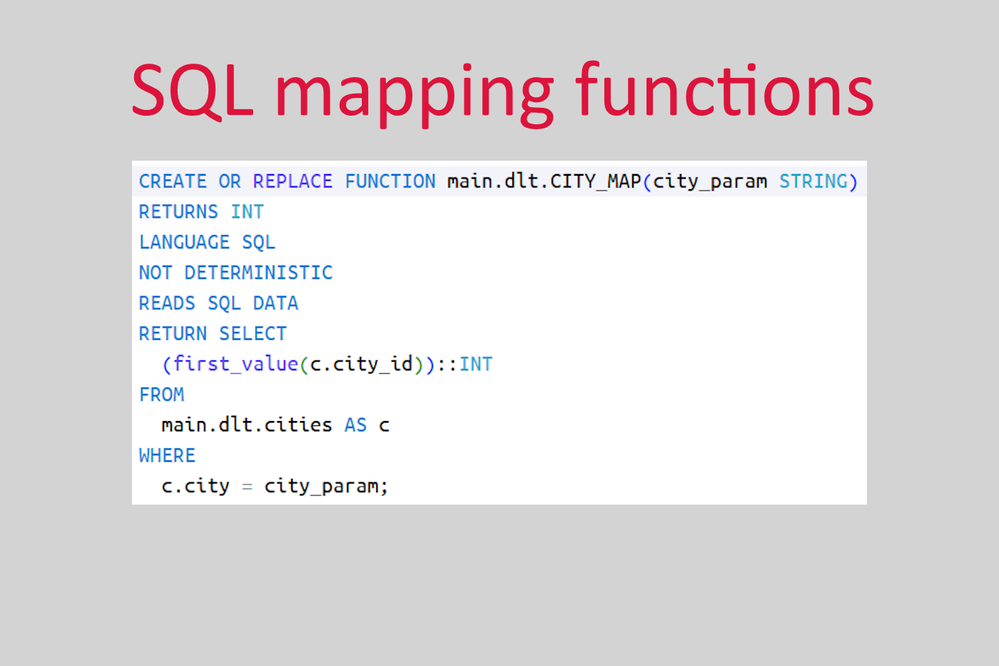 - In a subsequent stream, activate a function to replace values with the generated IDs in the SCD table.
