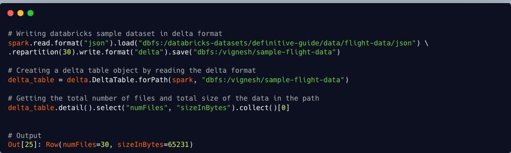 Very often, we need to know how many files my table path contains and the overall size of the path for various optimizations. In the past, I had to write my own logic to accomplish this.