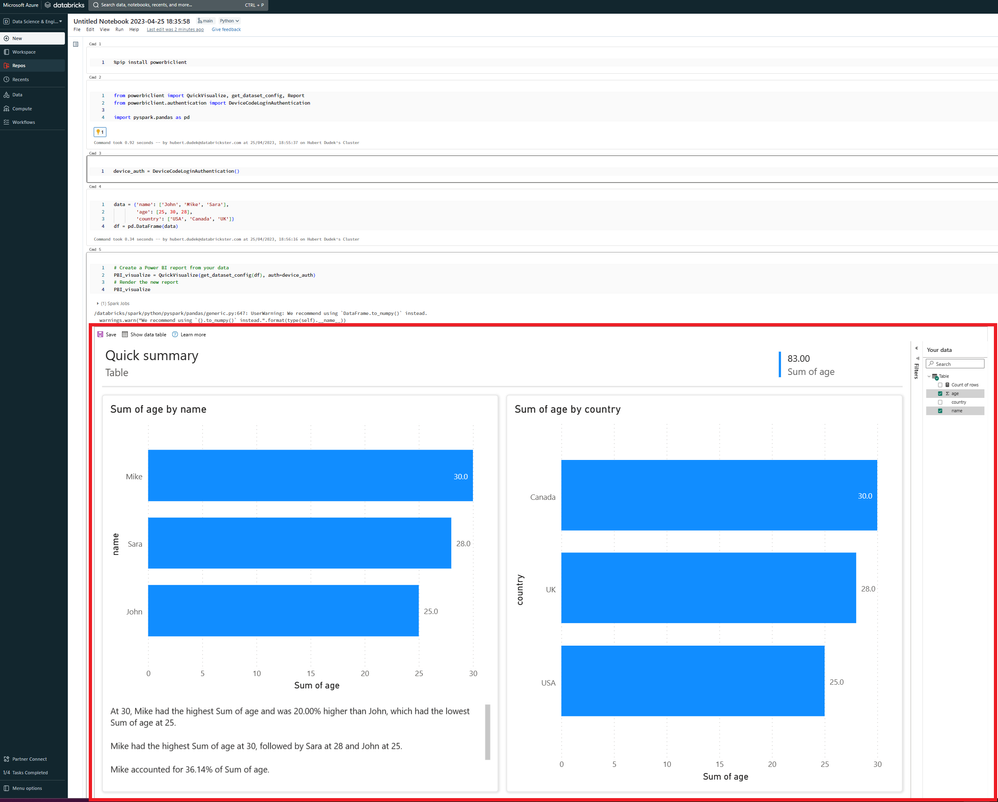 Exciting news for databricks and powerbi users. Using the code below, you can run PowerBI inside the databricks notebook!