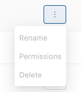 What determines whether an experiment's "Rename/Permissions/Delete" context menu is active or grayed out in the Experiments page?