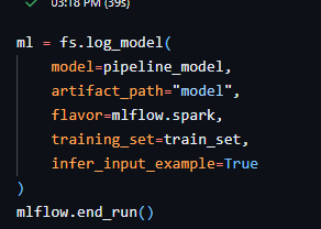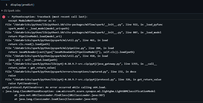 I'm running a model using LGBM with Spark, within Pipeline, but when I log it to MlFlow using the log_model feature store function, I can't replicate the pipeline in prediction. When I execute:predict = fs.score_batch(logged_model, df_pred) display(...
