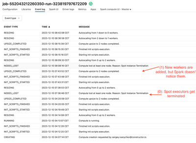 * The init script logs of the workers, which Spark doesn't notice, are fine, they complete successfully.