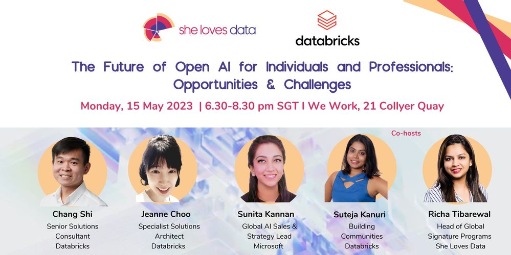 Join us for a fireside chat on the most cutting-edge topic of the year - ChatGPT-like solutions and their impact on society. Databricks Singapore Community team is thrilled to collaborate with She Loves Data to bring you this engaging discussion that will explore the limitless possibilities of the AI revolution.