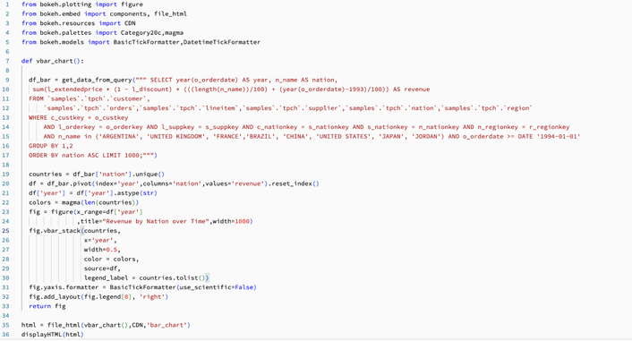 Till the above step we have created all the charts and dashboard on Notebook Interface only. To convert this dashboard to a shareable dashboard we simply have to embed this application into the Flask framework.