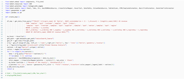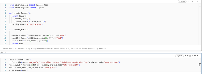 In order to gain valuable insights from large and complex data, it is necessary to use contemporary tools and technology. Organizations may enhance their performance by using data-driven choices and better knowledge of their operations with the correct tools. Databricks has built-in support for charts and visualizations in both Databricks SQL and in notebooks. On this page we will discuss another great utility for developing dashboards and applications in pure python called ‘Bokeh’.