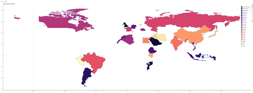 d) Map: We can present the income from different nations in a more interesting way by using a globe map visualization.