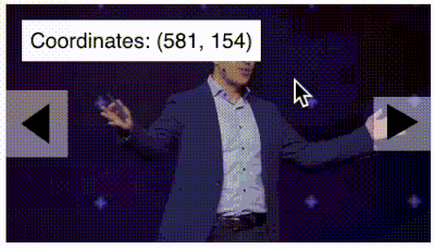 Finally, we can use both IPython Widgets and Databricks Notebook displayHTML feature to customize views to go through our frames. In the linked notebook we demonstrate a built-in JS snippet to display the coordinates of our mouse as we move it around the frame, which assists in finding the coordinates of objects.